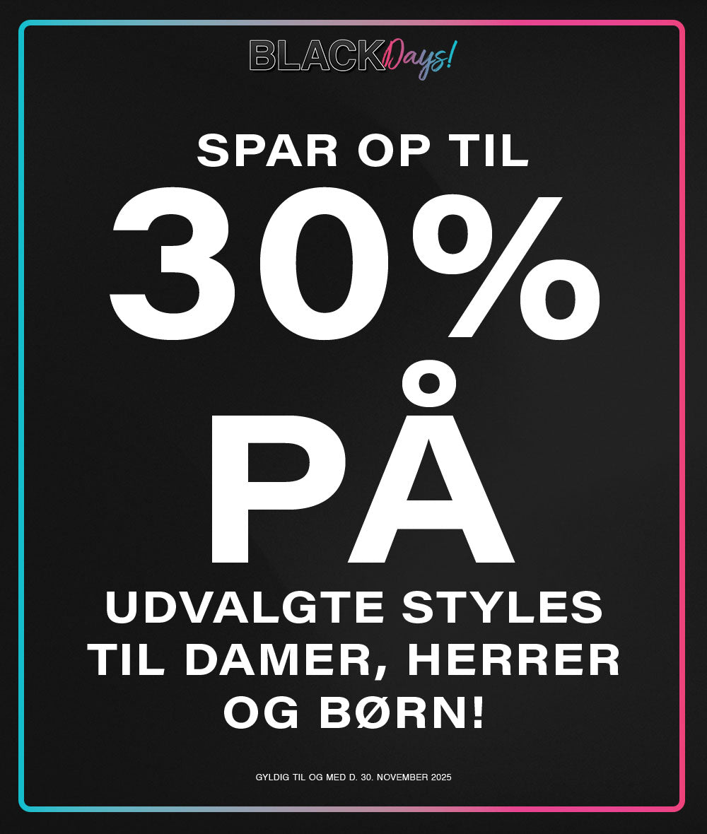 De gode tilbud starter allerede torsdag d. 27/11 og varer til og med d. 30. november. Spar 30% på et stort udvalg af styles.
