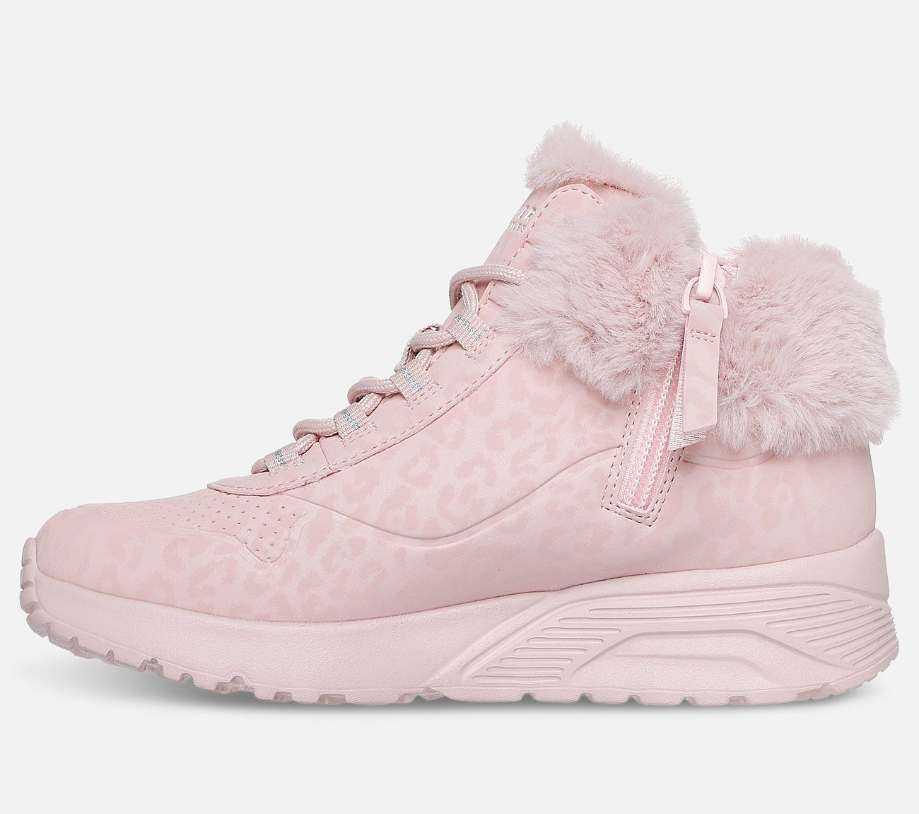 Opgrader din stil med Skechers Street Uno Lite-støvlen. Denne moderne støvle med stræksnørebånd har en syntetisk durabuck-overdel med metalliske detaljer, Skechers Adaptive Closure for nem påtagning, en Skechers Air-Cooled Memory Foam® indersål og en polstret mellemsål, der sikrer komfort hele dagen.