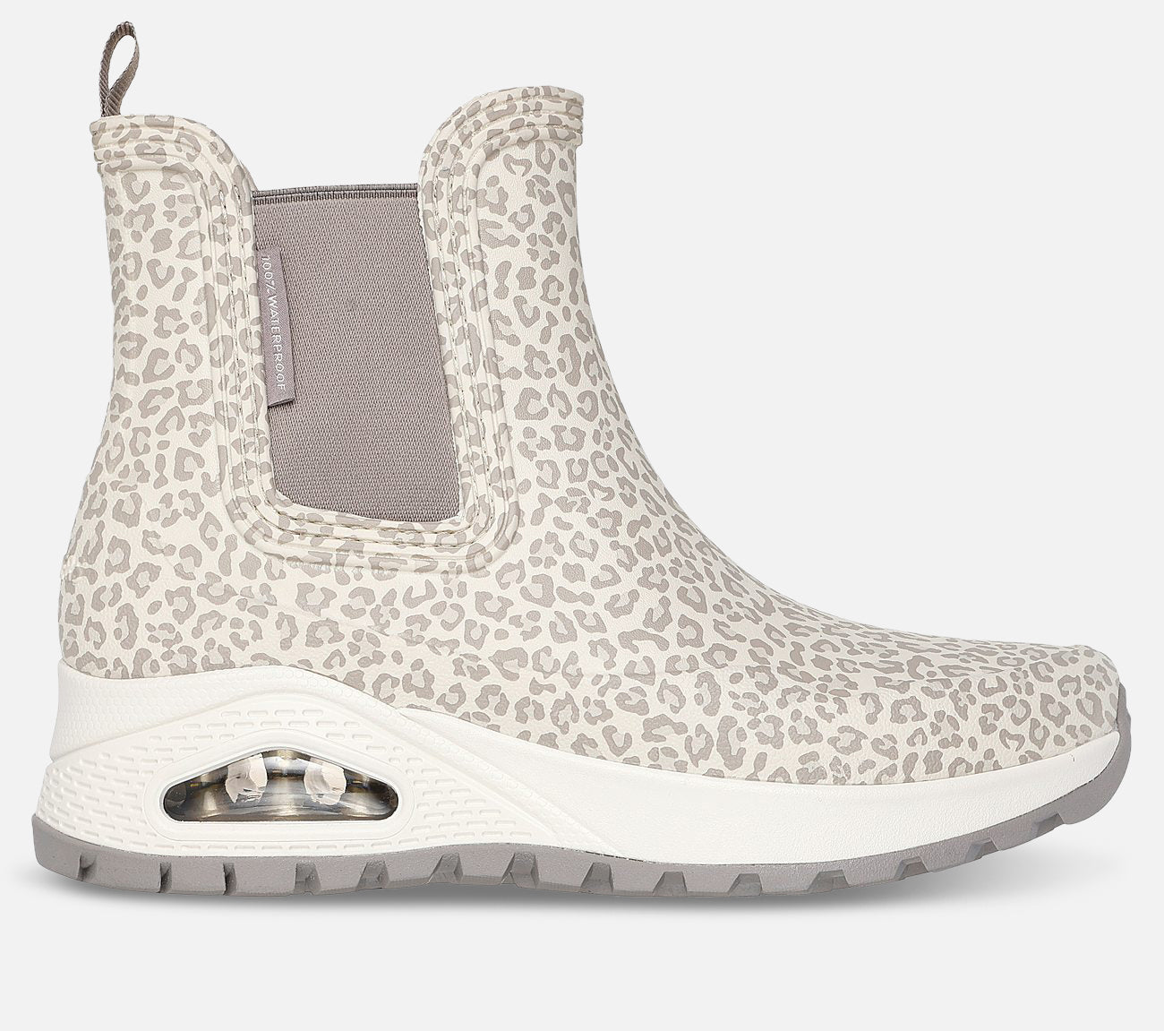 Træd ind i stilfulde vandtætte støvler med Skechers Uno Rugged - Dancing N The Rain. Denne støvle har en Skechers Air-Cooled Memory Foam indersål og en Skech-Air synlig airbag-mellemsål. Uanset vejret, tilbyder disse støvler både komfort og stil.